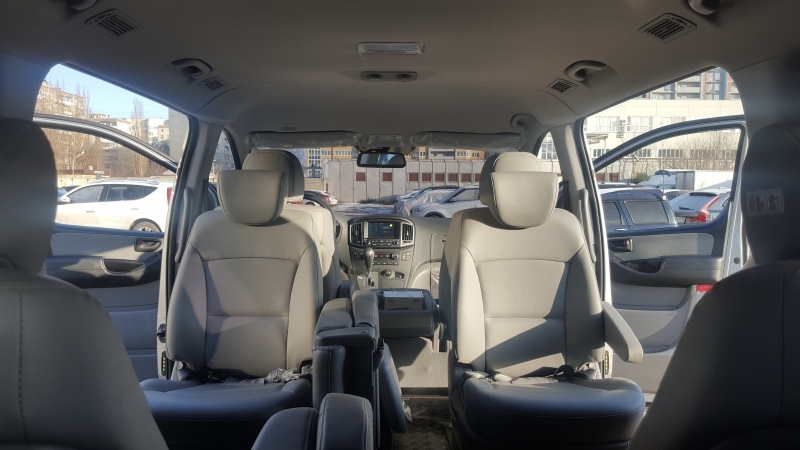Салон здесь имеет довольно богатое оснащение. Здесь есть и два кондиционера, и две печки. Также авто обладает широким спектром возможностей по трансформации внутреннего пространства, что делает Starex отличным помощником при перевозке объемного багажа.