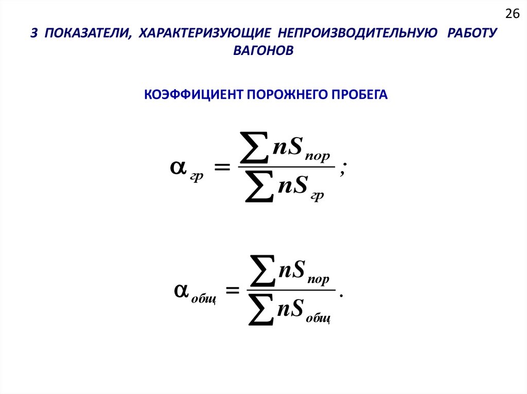 Коэффициент порожнего пробега входит в формулу, по которой рассчитывается время оборота. Ее предложил еще в начале XX века один из корифеев нашей науки Иван Иванович Васильев. Она записывается в виде трехчлена.