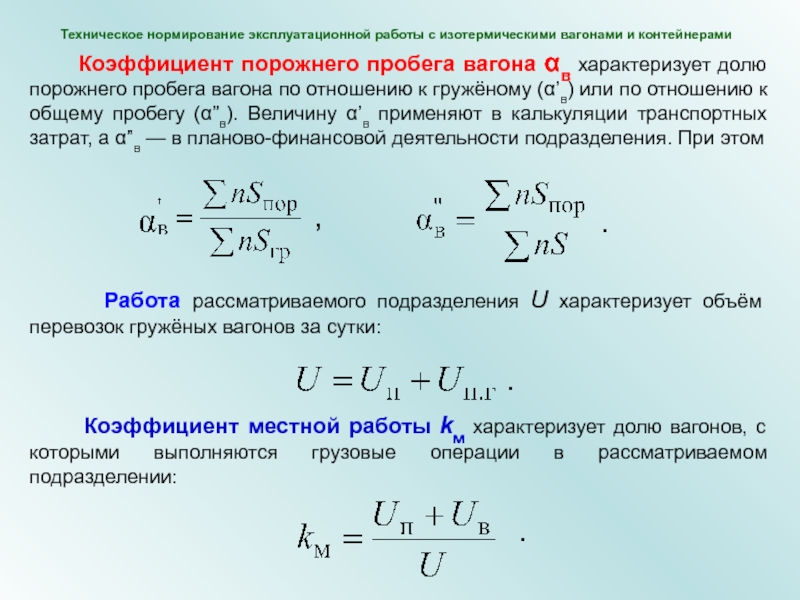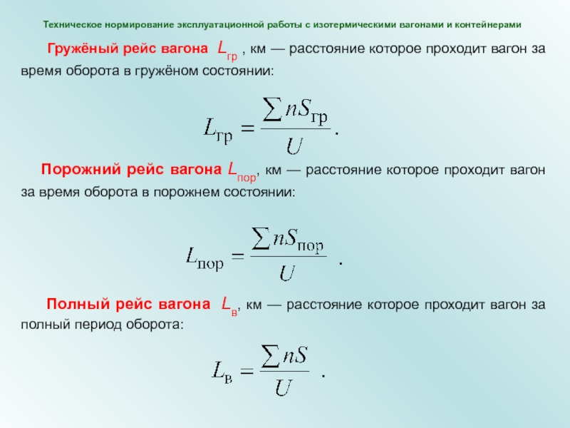Первый член формулы выражает среднее время, которое затрачивает вагон при передвижении в поездах на участках железных дорог. Второй – характеризует время, которое затрачивает вагон вследствие простоя на технических станциях. Третий – отражает затраты времени на станциях погрузки/выгрузки.