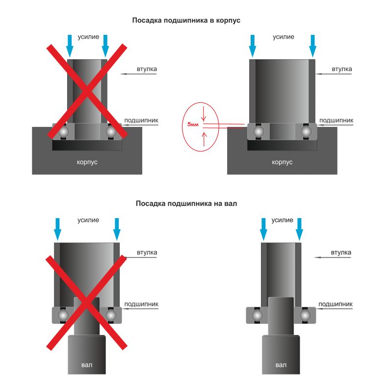 Важно предотвратить проскальзывание, надёжно закрепив с достаточным натягом то кольцо, которое вращается, либо к валу, либо в корпусе.
