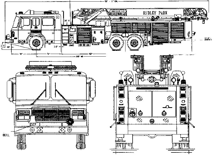 Сюда не входят удлиненные подъемные лестницы или другое оборудование. Средняя пожарная машина имеет длину около 35 футов, ширину 9 футов и высоту 9 футов.