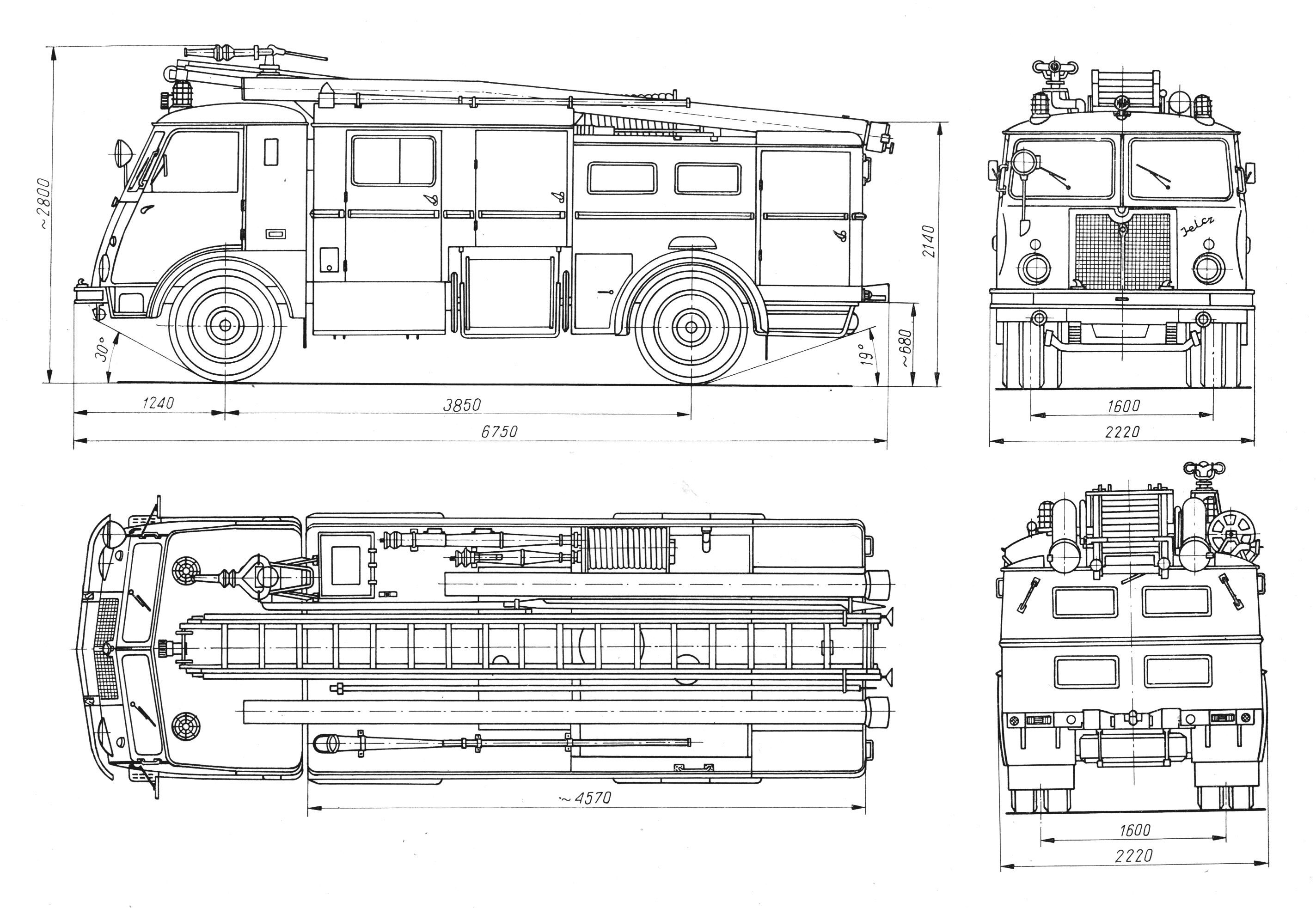 Какой ширины/длины/высоты пожарная машина/двигатель?