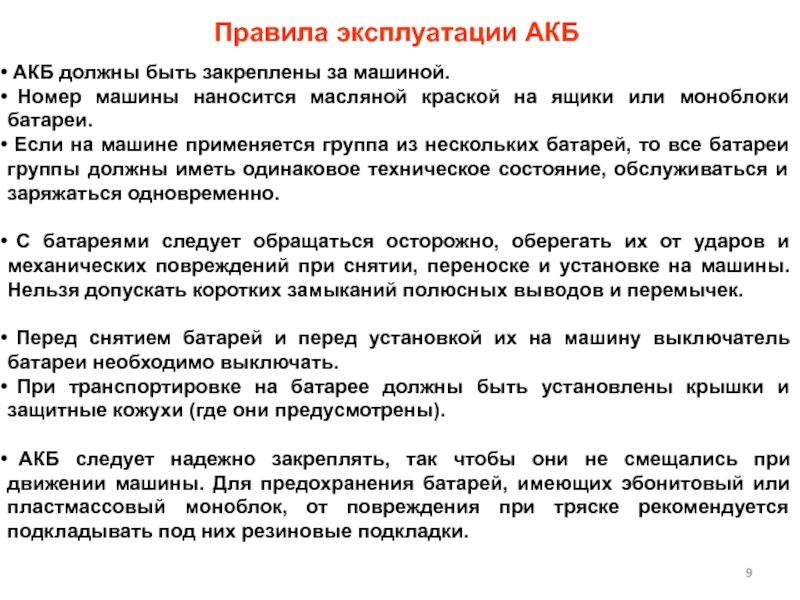 Батарея должна быть надежно закреплена в штатном гнезде автомобиля.