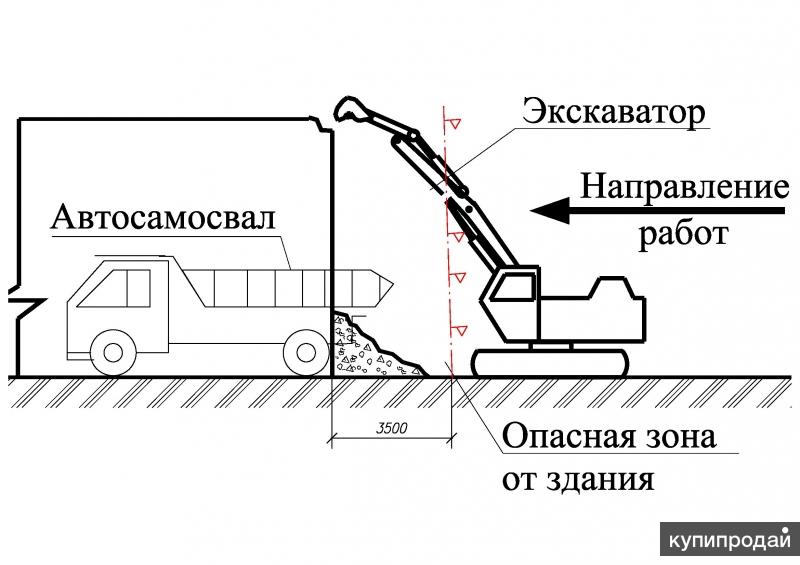 - Машинист не имеет права находиться в пределах призмы обрушения земли, в рабочей зоне поворотных механизмов, в непосредственной близости к кромке котлована.