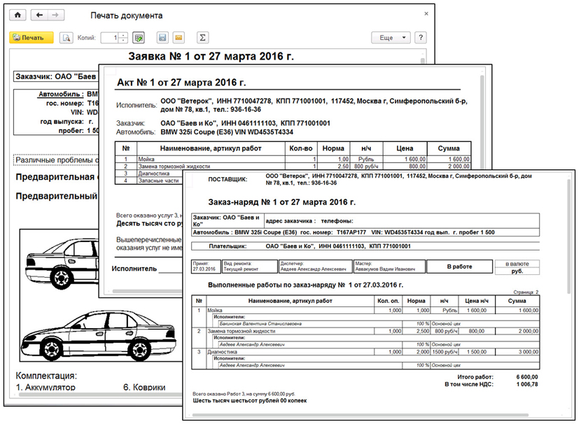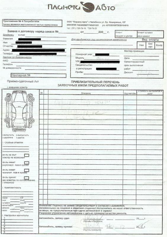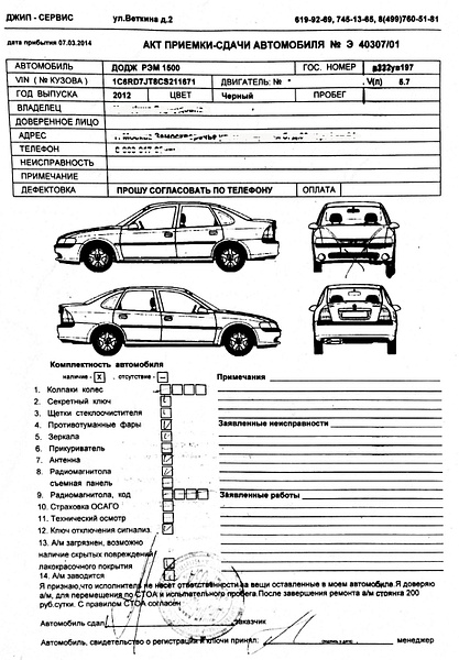 Выявленные неисправности и потребные для ремонта запасные части записываются в заявку на ремонт. Упомянутые работы проводятся в присутствии заказчика, который подписывает заявку на ремонт, являющуюся документом для открытия заказа-наряда на производство. Здесь же заполняется акт комплектности автомобиля, который подписывается заказчиком и представителем СТО.