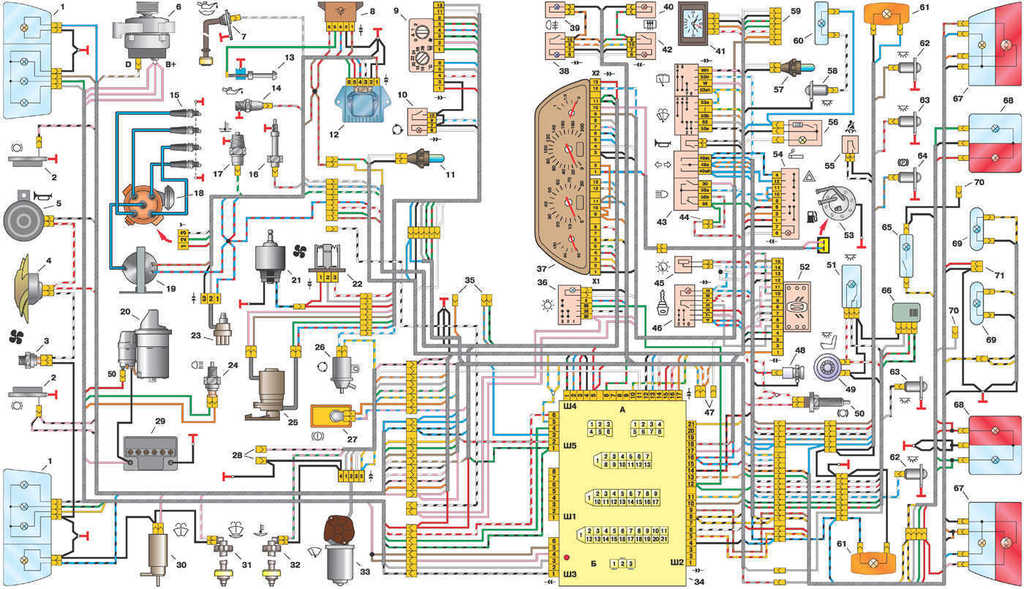Полная схема электрооборудования автомобиля дается в каждой инструкции (руководстве) по эксплуатации данного автомобиля. Это облегчает отыскание неисправности в случае ее появления.