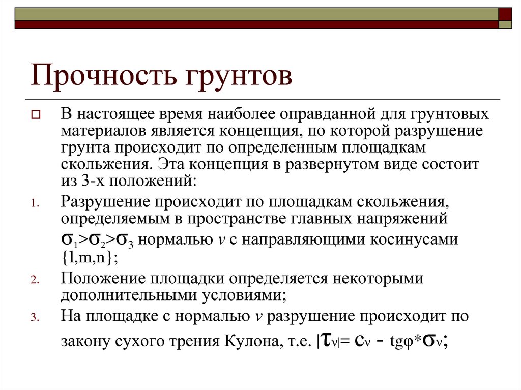 Механическая прочность грунта является важным понятием при рассмотрении (и прогнозировании) поведения грунта.