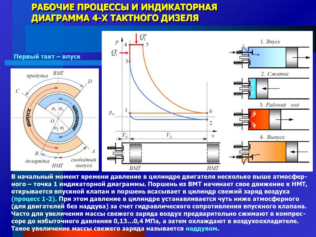 а в двигателях, работающих с нагнетателем, то есть с наддувом, оно выше атмосферного и равняется давлению наддува р.