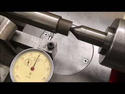 Чтобы станок мог обтачивать параллельные детали, ось шпинделя должна быть параллельна станине станка. На некоторых токарных станках это определяется конструкцией станка при его изготовлении. На токарных станках, где это можно отрегулировать, это необходимо отрегулировать. Если бы коническая втулка на шпинделе была идеальной, то можно было бы установить на эту втулку испытательный стержень с конусом.