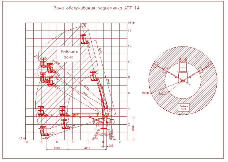зона работы крана Rоп
