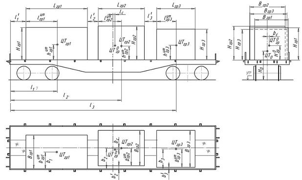 3. Определение смещения общего центра тяжести груза на вагоне