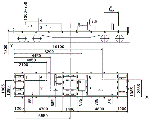 – длина кузова вагона, мм;