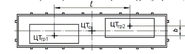 центра тяжести груза в поперечном