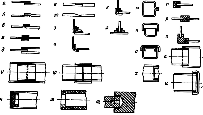 Конструкция стыков. Соединять элементы сваркой можно в стык, внахлестку, тавром и углом (рис. III—9).