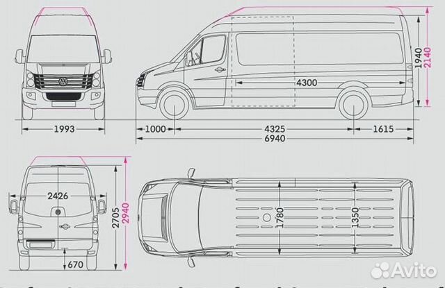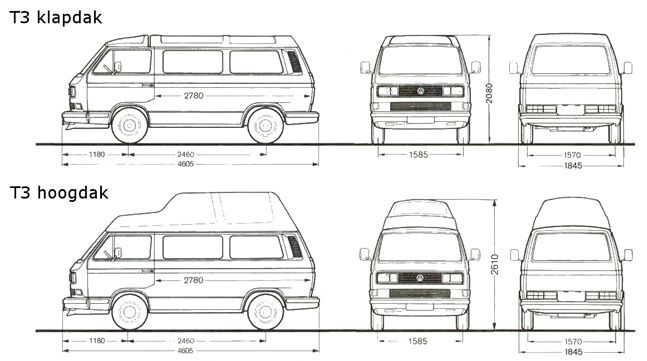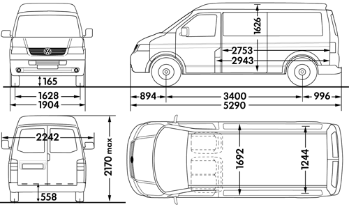 Размеры кузова Volkswagen Transporter T4 — Таблицы размеров