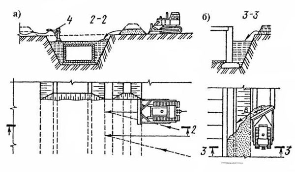 Разработка грунта бульдозером и схемы работ