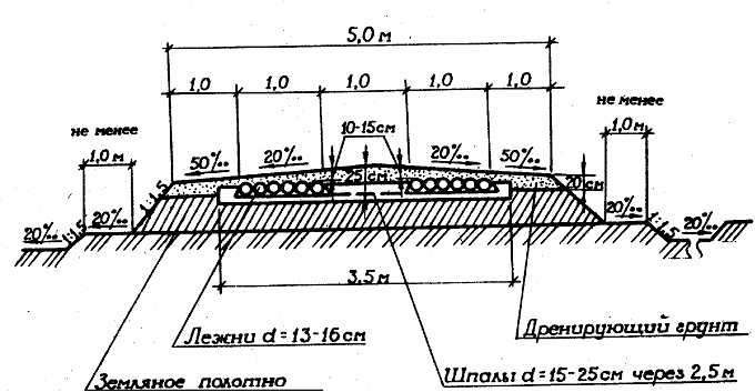 В зависимости от того, будет ли ось дороги совпадать с поверхностью земли или проходить выше или ниже ее, поперечный профиль будет иметь своеобразный характер. При совпадении оси дороги с поверхностью местности считается, что дорога идет в нулевых отметках, следовательно, при ее строительстве выполняется минимальный объем земляных работ.