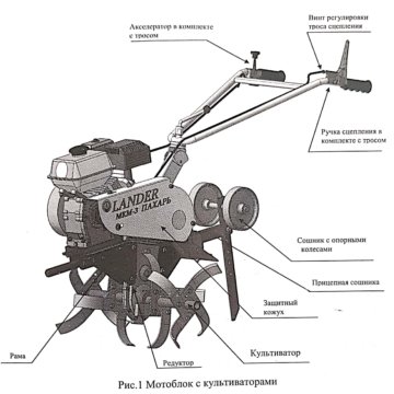 Предусмотрены дополнительные детали, устройства, обеспечивающие многофункциональность агрегата «Каскад» (мотоблок). Инструкция говорит, что можно обрабатывать даже целину.