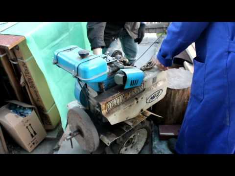 Чихающий, стреляющий мотоблок в глушитель. Белый выхлоп говорит о том, что топливо не сгорает полностью