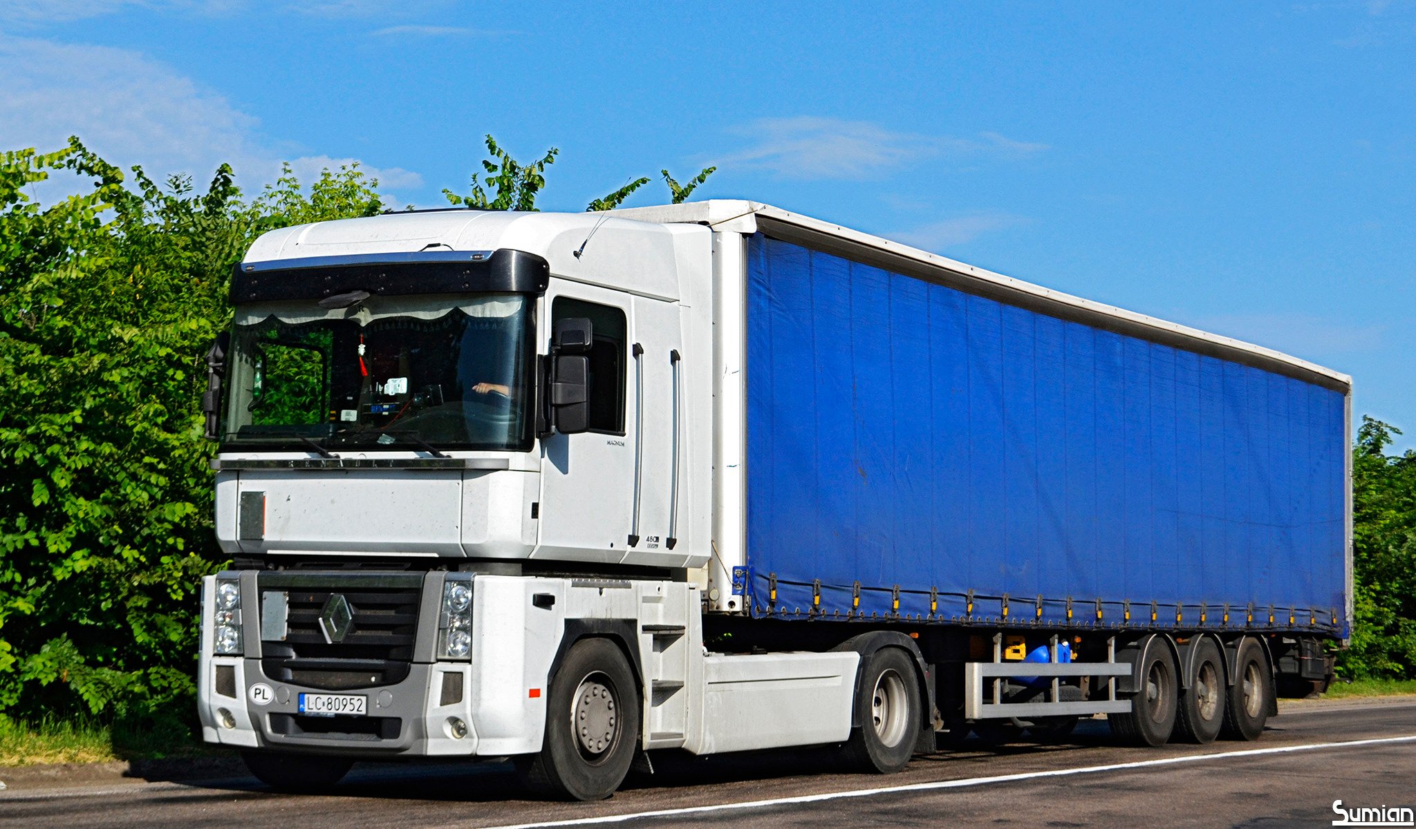 08. Зато Магнумы от Рено заслуженно пользовались популярностью во всей Европе. Меньше всего их встречалось на севере и юге, что объяснялось огромной площадью остекления (трудно обогревать или охлаждать кабину). А вот в Восточной Европе они пользуются до сих пор огромной любовью. Похоже, большинство тягачей заканчивают жизнь в Польше или соседних странах, как этот словацкий тягач некоего Йозефа Рыбанского. Машины второго поколения отличались измененной внешностью с новыми блок-фарами, и уменьшившейся фирменной эмблемой.
