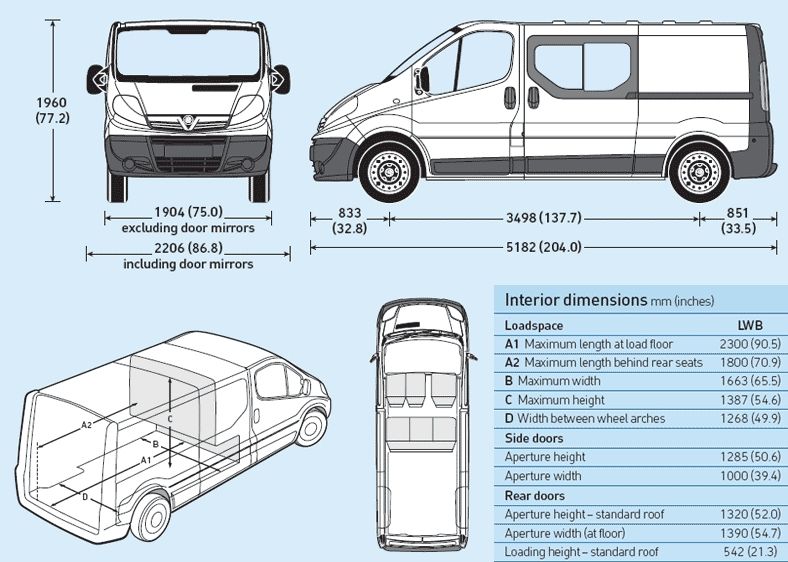 Габариты Renault Trafic — все размеры (ширина, высота и длина) автомобиля на WhoByCar.com