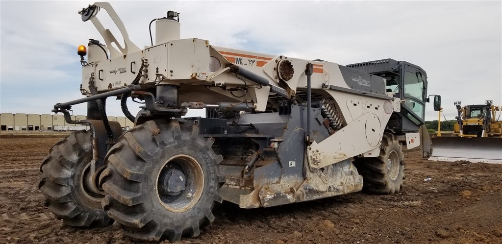 Данный вид спецтехники схож по своим конструкционным особенностям с трактором. Двигатель ресайклера располагается в передней части, а навесное оборудование — в задней. За счет того, что задняя часть более тяжелая — работы отличаются плавностью и точностью. Большие колеса дают технике надежную устойчивость.