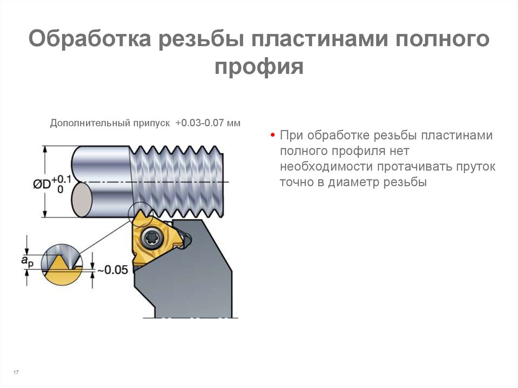 Особенностью разрезных плашек является возможность регулировать диаметр нарезаемой резьбы в пределах 0,1…0,25 мм. Однако они обладают пониженной жесткостью, что сказывается на точности получаемого профиля.
