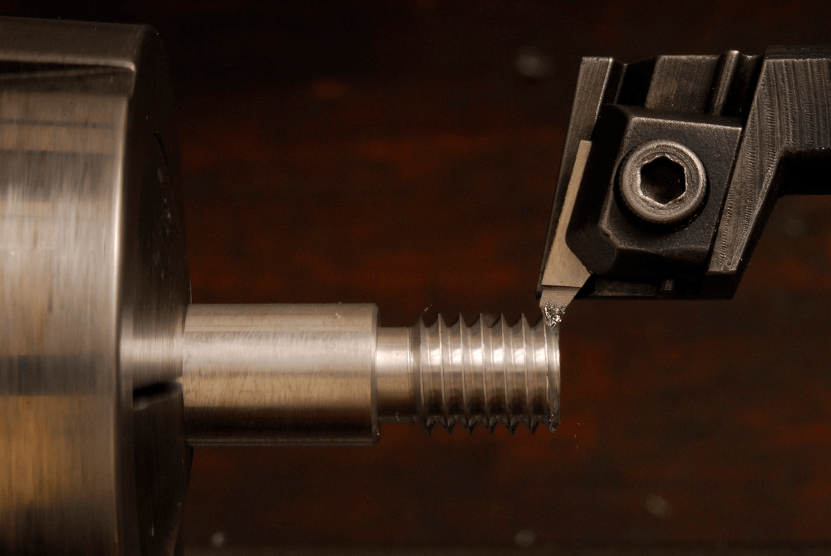 Вы также можете обработать короткий участок и нарезать на него резьбу, затем уменьшить следующий участок и нарезать на него резьбу и т. д. Также следите за диаметром стержня — очень небольшое уменьшение диаметра приводит к огромной разнице в требуемом усилии нарезания резьбы.
