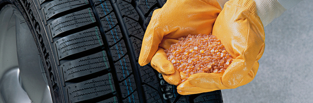 Натуральный каучук передает образы каучуковых деревьев, выращенных в глубинах тропического леса, в то время как синтетические каучуки напоминают о традиционном производстве и переработке нефти.