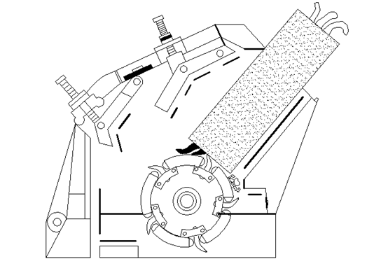 Исходный материал, поступая в зону измельчения (помольную камеру) ударяется о вращающийся ротор. Так происходит первичное измельчение , после чего материал отбрасывается и ударяется о брони корпуса дробилки.