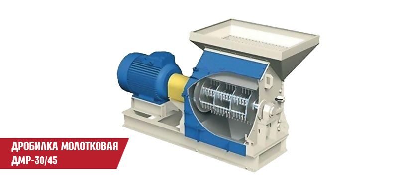 Представленное оборудование относится к дробилкам ударного действия, разрушение кусков дробимого материала происходит в результате ударов бил, жестко закрепленных на роторе.