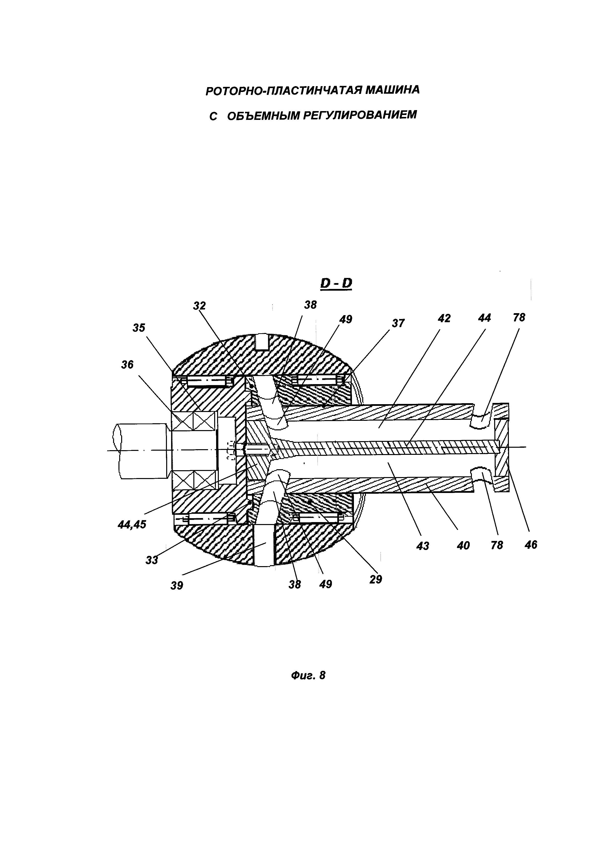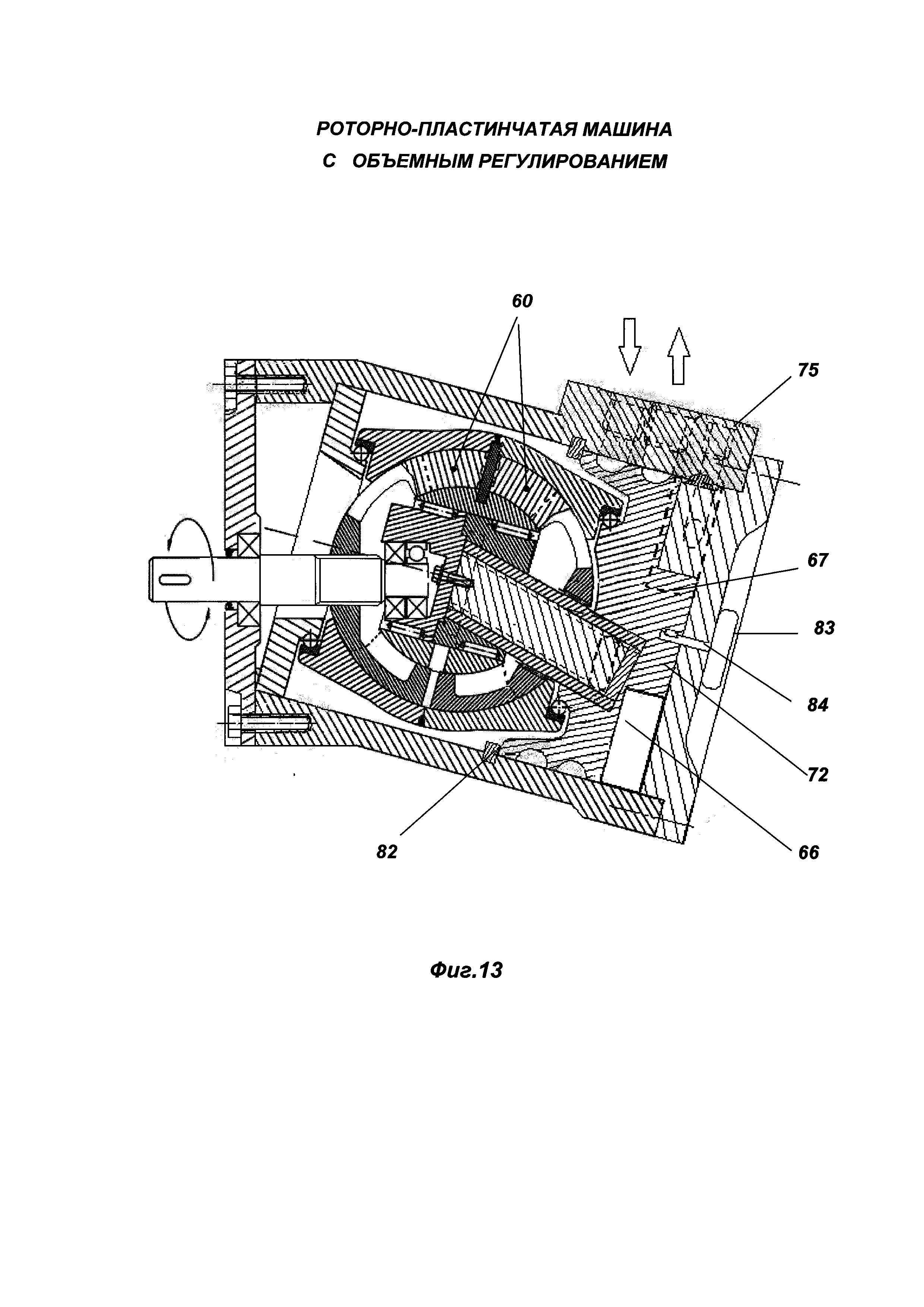 К техническим результатам, получаемым от реализации заявленного изобретения, можно отнести повышение кпд, увеличение давления перекачиваемого газа — компрессии, уменьшение трения в рабочих поверхностях трения, предотвращение заклинивания взаимодействующих между собой элементов и, как следствие, уменьшение общих механических потерь в роторно-пластинчатой машине, а также уменьшение пневмогидравлических потерь роторно-пластинчатой машины.