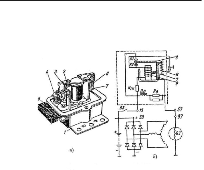 Регулятор напряжения представляет собой электромагнитное реле. Как у каждого