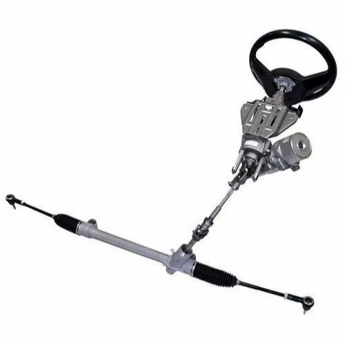 Реечная передача заключена в металлическую трубу, каждый конец которой выступает из трубы и соединен с осевым стержнем. Шестерня прикреплена к рулевому валу так, что при повороте рулевого колеса шестерня вращается, перемещая рейку. Осевой стержень на каждом конце стойки соединяется с концом тяги, которая прикреплена к шпинделю.
