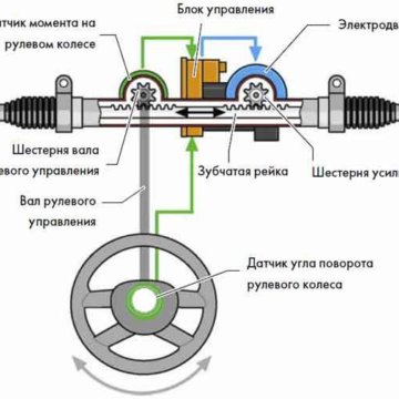 Основными компонентами электрических усилителей рулевого управления являются датчик крутящего момента (прикладываемого водителем к рулевому колесу), электронный блок управления и электродвигатель (исполнительный механизм). Датчик содержит уже знакомый торсион, встраиваемый в разрыв рулевого вала, и задача определения момента сводится к измерению угла скручивания торсиона. Электромотор может устанавливаться или на рулевом валу, или непосредственно на рейке. Каждый из вариантов имеет свои плюсы и минусы. Между прочим, многовариантность устройства также является его достоинством, так как развязывает руки конструкторам при компоновке автомобиля.