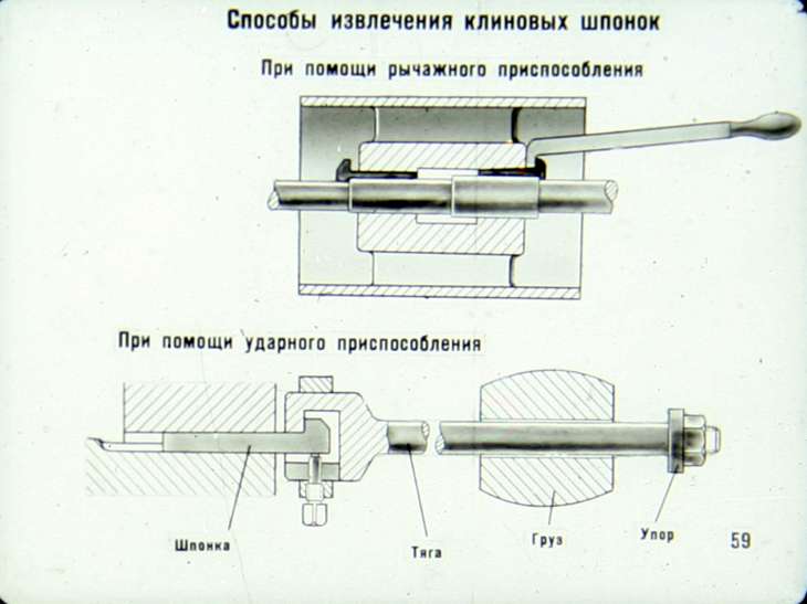 Клиновидные шпонки в зависимости от конструкции узла, определяющей доступ к ним, можно удалять с помощью самых различных приспособлений.