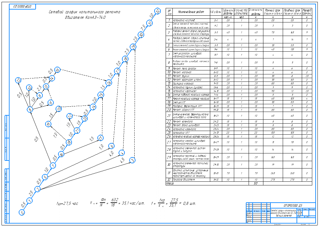 7 Сетевой график ремонта агрегата. Расчет параметров графика