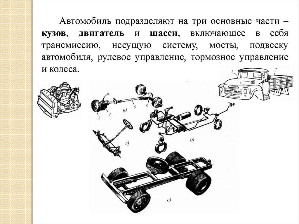 - Благодаря шасси и элементам подвески, которые входят в состав ходовой части, происходит понижение нагрузок и компенсация колебаний во время движения транспортного средства по неровной дороге и бездорожью. Благодаря подрамнику, который входит в состав шасси, инженеры получили возможность устанавливать на шасси кузов, силовой агрегат, трансмиссию и прочие агрегаты.