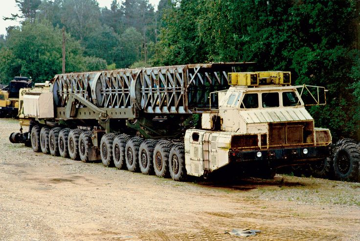 МАЗ-7904 12×12 появился еще в 1983-м в рамках программы стратегического ракетного комплекса «Целина». Его грузоподъемность – 220 т! Не менее фантастичны габариты: длина более 30 м, ширина свыше 7 м, высота почти 3,5 м, колеса выше человеческого роста! В моторном отсеке – судовой дизель мощностью 1500 л.