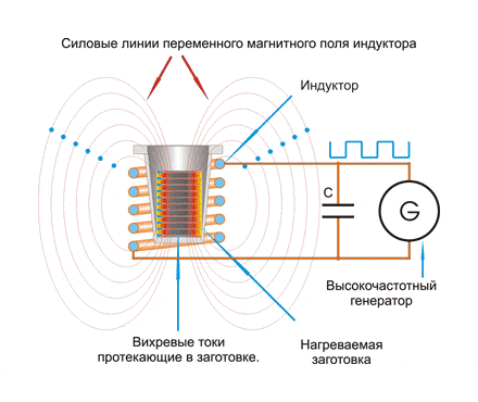 Любой металл, попавший в зону действия высокочастотного магнитного поля, интенсивно нагревается. Для этого необходимо выполнить несколько условий:. Роль первичной обмотки выполняет катушка индуктивности, по которой протекает ток высокой частоты.