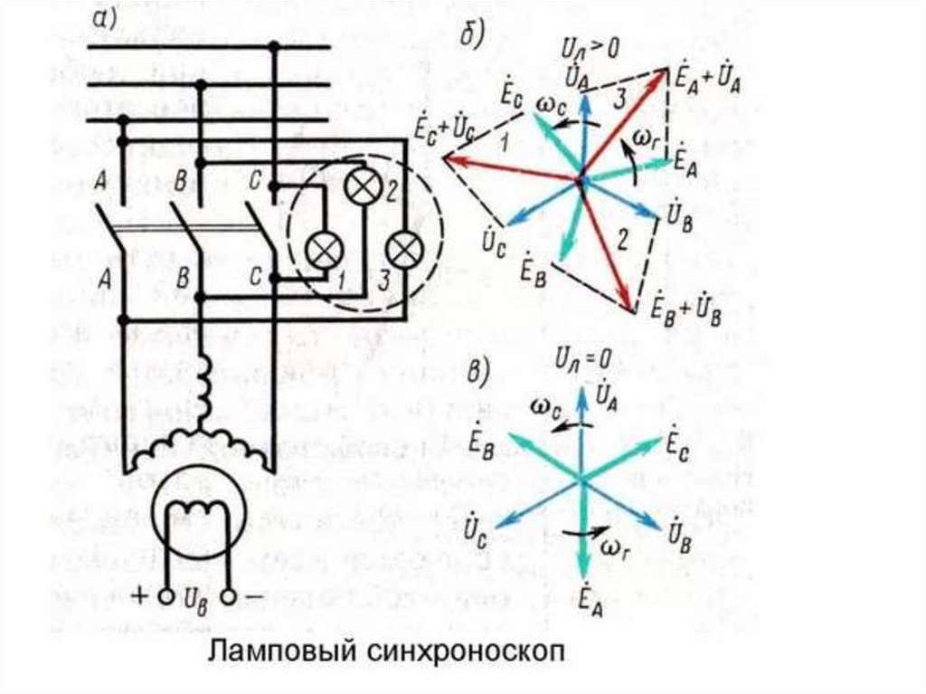 изменение фазных обмоток. Повторите шаги со 2 по 4 еще раз. - Измените скорость вращения с помощью ручки управления, чтобы загорелся синхроноскоп