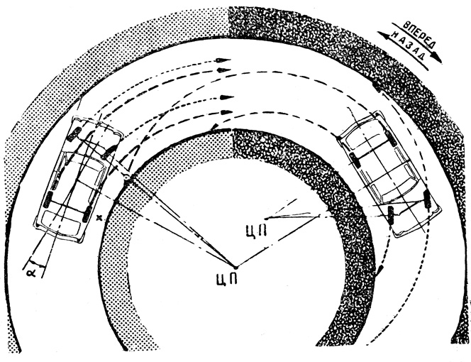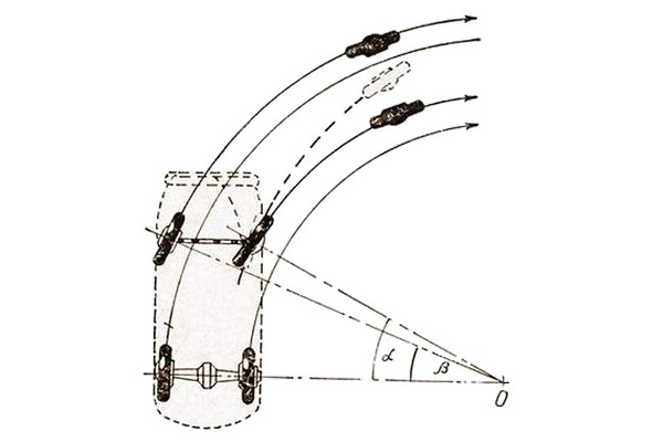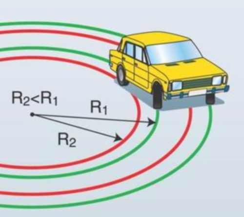 Поворотом управляемых колес ТС водитель заставляет его передвигаться по траектории заданной кривизны в соответствии с углами поворота колес. Чем больше угол их поворота относительно продольной оси машины, тем меньше радиус поворота ТС.