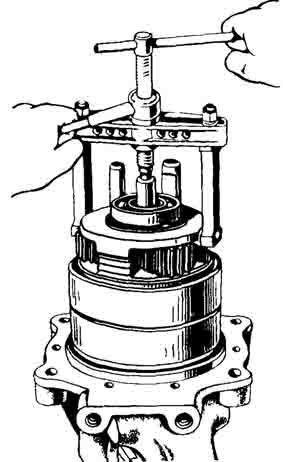 Во всех случаях, когда для исправления неисправностей вал отбора мощности требуется отделить от трактора, для этого вначале необходимо отвернуть болты креплений задней крышки, а затем ВОМ выпрессовать в сборе с болтами технологическими. После этого нужно убрать тормозные ленты и проконтролировать их толщину.