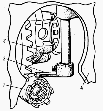 - Совместите гнезда вала переключения передач и заднего моста с помощью рычага управления. После совпадения отверстий их фиксируют установочным болтом.