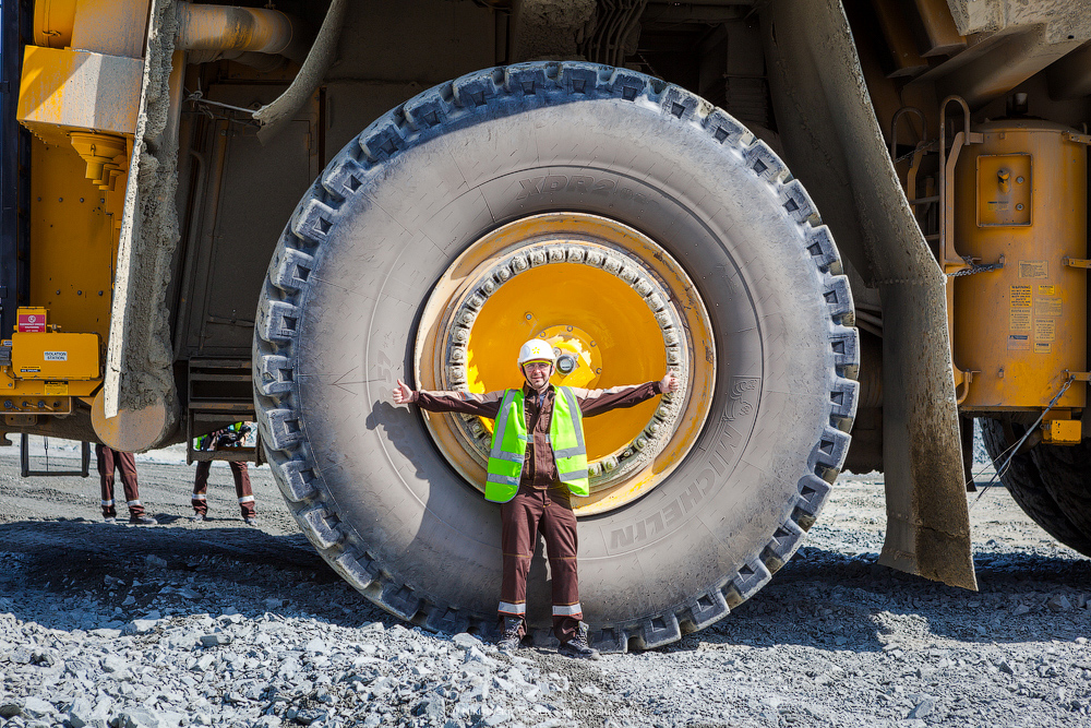 Так как разработка и производство гигантских шин – задача не из легких, в Бобруйске («Белшина») выпускают шины для сравнительно небольших самосвалов БелАЗ, а для «гигантских Гулливеров» закупают шины у Bridgestone или Michelin. Поэтому Мишлен, занимая первенство в данной отрасли, производит самые огромные и современные шины для карьерных самосвалов. Первое от чего пляшут конструкторы гигантских самосвалов – шины, а точнее их максимальная нагрузка. На разработки французских инженеров ориентируются все производители карьерных самосвалов. Чем больше шина и ее нагрузка, которую она может принять на себя, тем выше грузоподъемность самосвала, быстрее может осуществляться транспортировка полезных ископаемых и в итоге прибыльней бизнес.