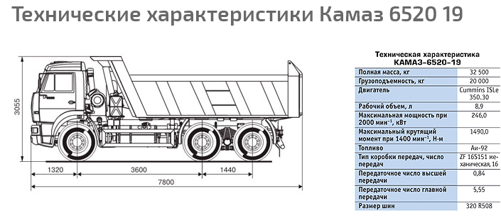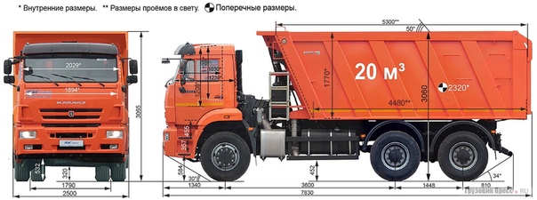 Но так как нас больше интересуют размеры КамАЗа, то отдаем «пальму первенства» самосвалу КамАЗ-65201. Его длина 8.9 м, ширина 2.5, а высота почти 3 метра, при этом максимальный объем используемой платформы составляет 20 м3, а грузоподъемность данного авто больше 20 тонн .