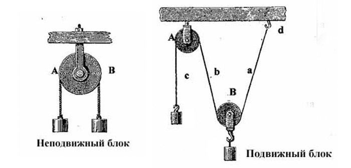 Различают подвижный и неподвижный блоки.