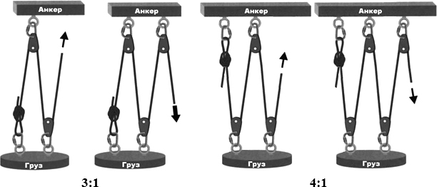 Существуют следующие разновидности полиспастов:
