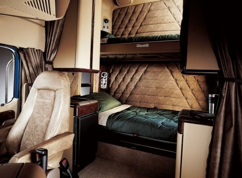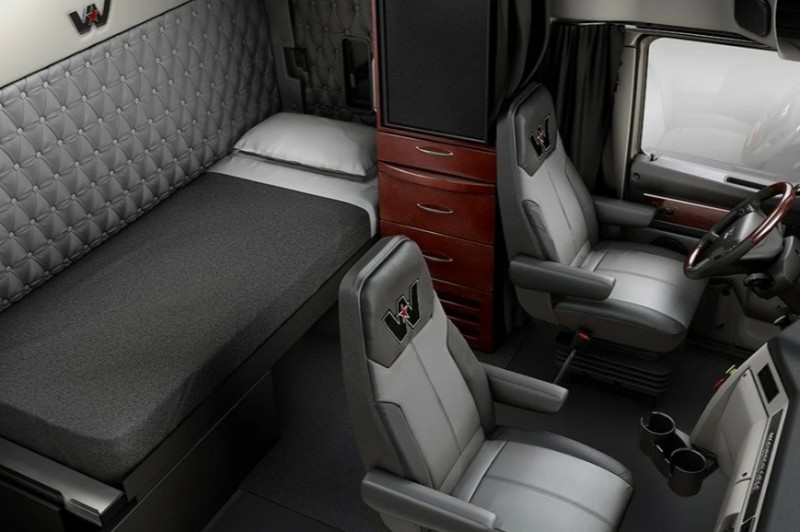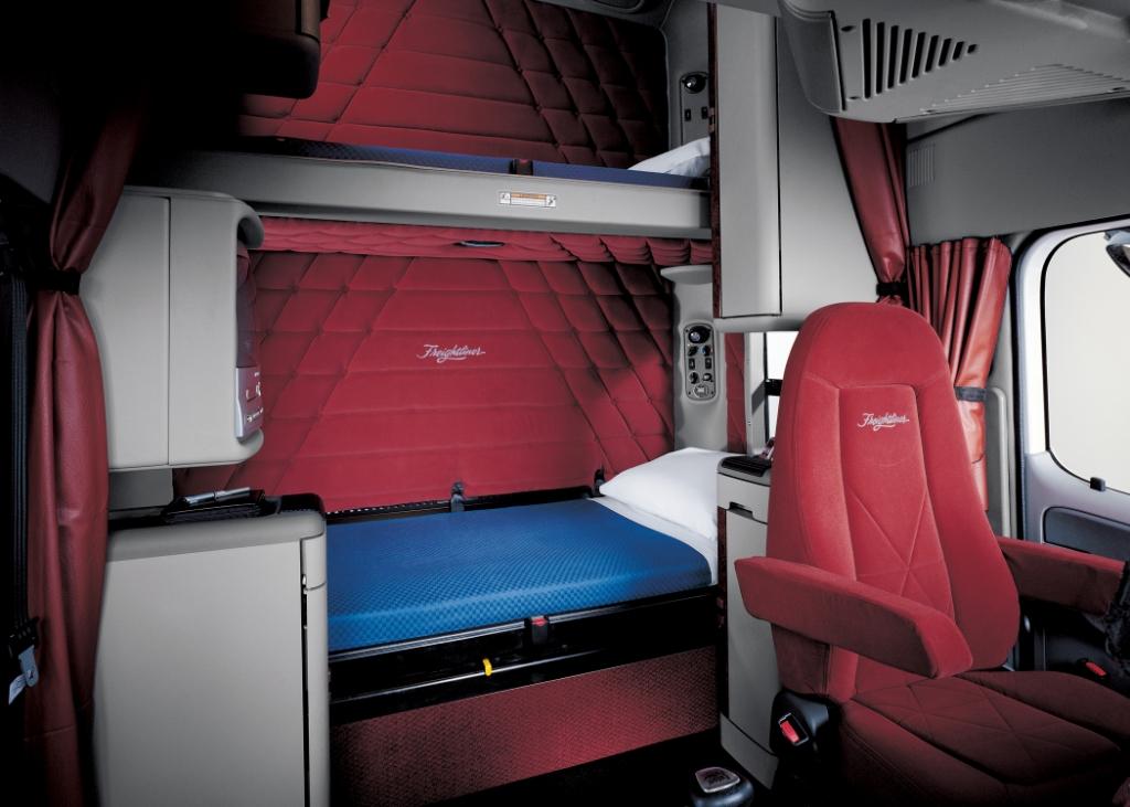 Стандартная спальная кабина серии G отличается от топовых более скромным внутренним пространством, однако это может стать и преимуществом – такая кабина быстрее прогревается в мороз. Рядная «шестерка» объемом 13 литров (370 л. с. 1 900 Нм) трудится в содружестве с 9-диапазонным «автоматом» Allison A67R и позволяет просто выбирать направление и «валить» на все деньги. Ну а если засядешь, то выручит механическая лебедка.