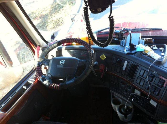И отказываться от этих опций не стоит – слишком велика цена ошибки, мало того что полная масса автопоезда более 60 т, так еще и водить его придется по технологическим грунтовым дорогам. И тут надо не только смотреть в оба, но буквально чувствовать немаленькие габариты и учитывать все неровности. Нередки случаи, когда на сложном рельефе тяжелый прицеп заваливал автопоезд или ломал дышло прицепа.